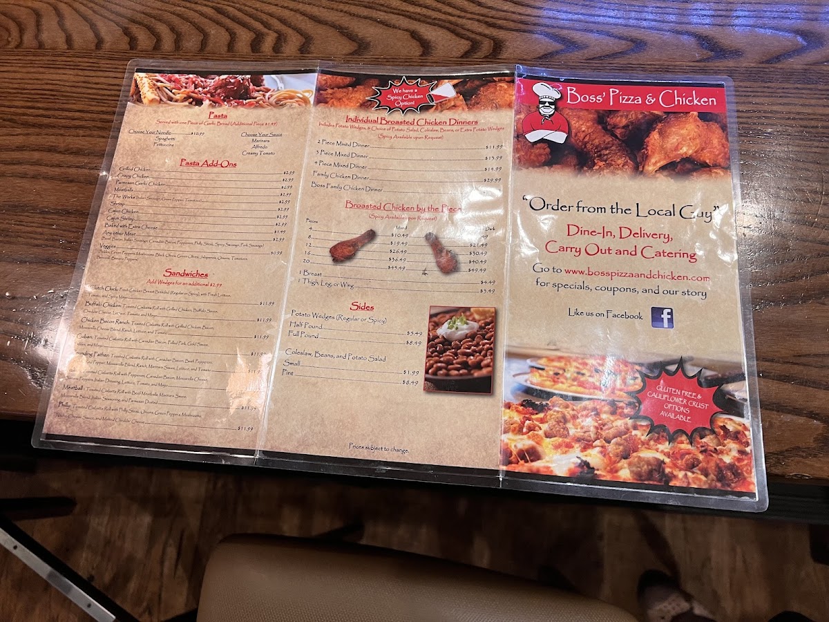 Welcome to the Boss' Pizza And Chicken Des Moines Menu, where every bite is packed with flavor and comfort. Located at 5000 Merle Hay Rd in Urbandale, IA, this spot is a go-to for anyone craving delicious pizza and mouthwatering chicken. The menu is filled with hearty options to satisfy all your cravings, from cheesy, saucy pizzas to crispy, perfectly seasoned chicken. Whether you're in the mood for a classic slice or something with a little more flair, there's something here for everyone. Dive into their signature pizzas, loaded with fresh ingredients, or explore the crispy fried chicken, made to perfection. Pair it all with a side of their savory fries or fresh salads, and you've got a meal that’s both satisfying and delicious.